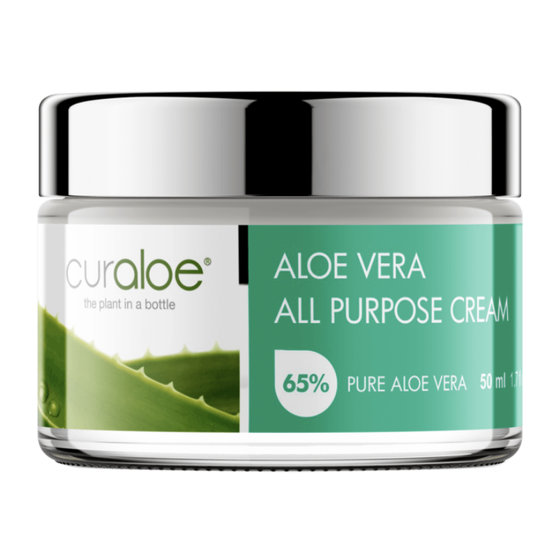 De Curaloe All Purpose Cream bevat 65% Aloë Vera gel, Cacao Butter, Mango Butter, Tea Tree olie en vitamine E. Deze Cream geneest, hydrateert en verzacht de huid en ondersteunt de elasticiteit van de huid.